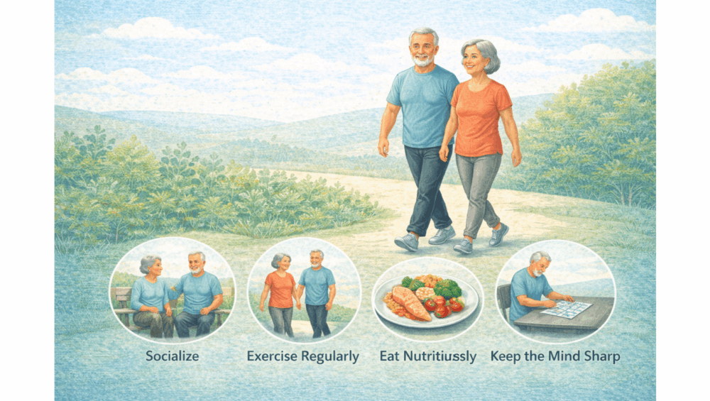 Health just doesn’t mean avoiding illness, especially after 60; it’s about maintaining the physical strength, emotional state of mind, and social connections. This can be done by bringing healthy habits into your lifestyle, periodical medical check-ups, and required care and also bringing in support systems to help the elderly live a healthy and confident life.